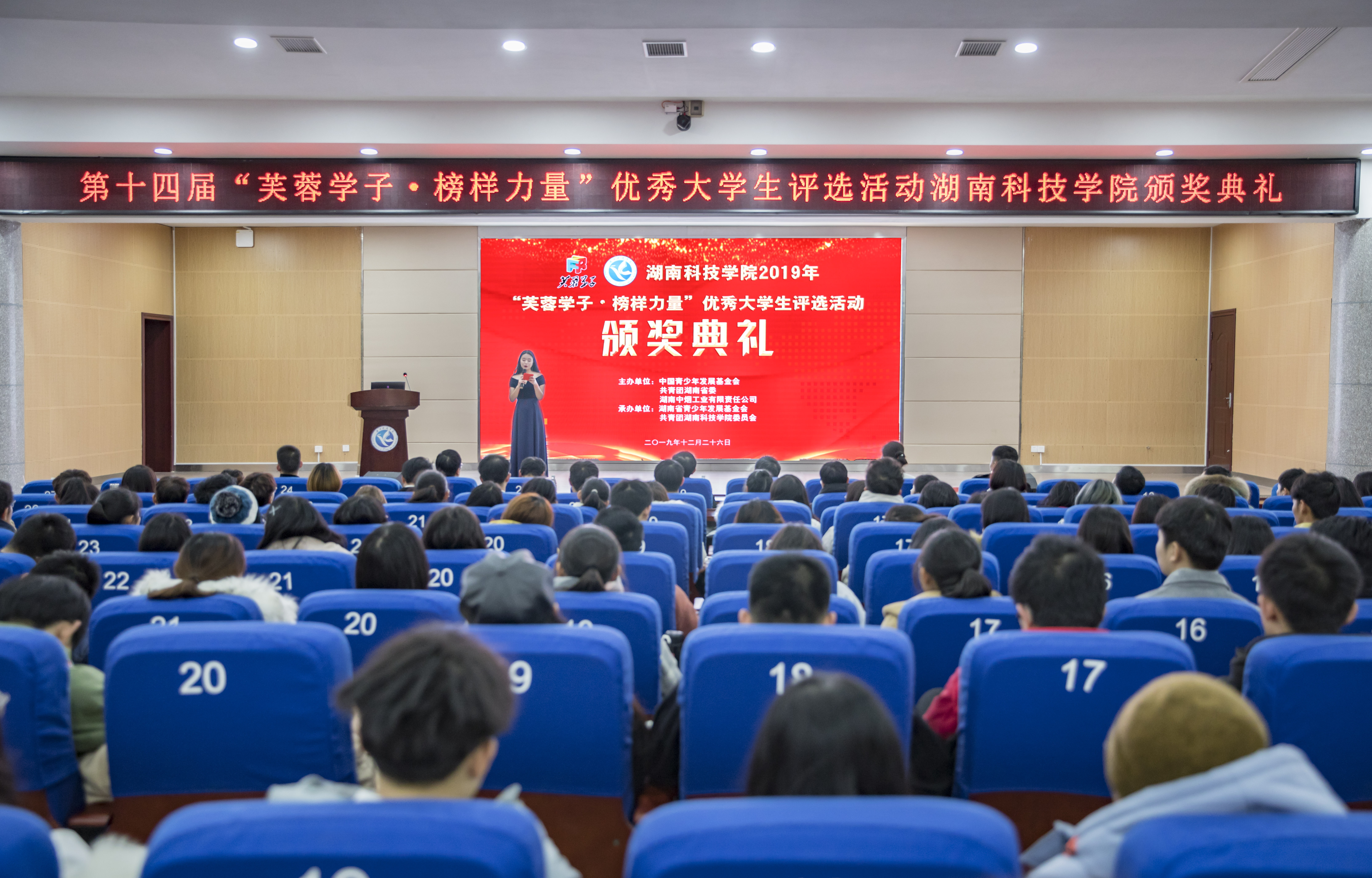 本网讯 12月26日晚,第十四届“芙蓉学子·榜样力量”乐鱼官方网站优秀大学生评选活动颁奖典礼在潇湘大讲堂举行。副校长吴小林,宣传统战部、学工部、教务处、科技处、团委、就业创业指导中心等职能部门负责人及600余名学生代表参加。