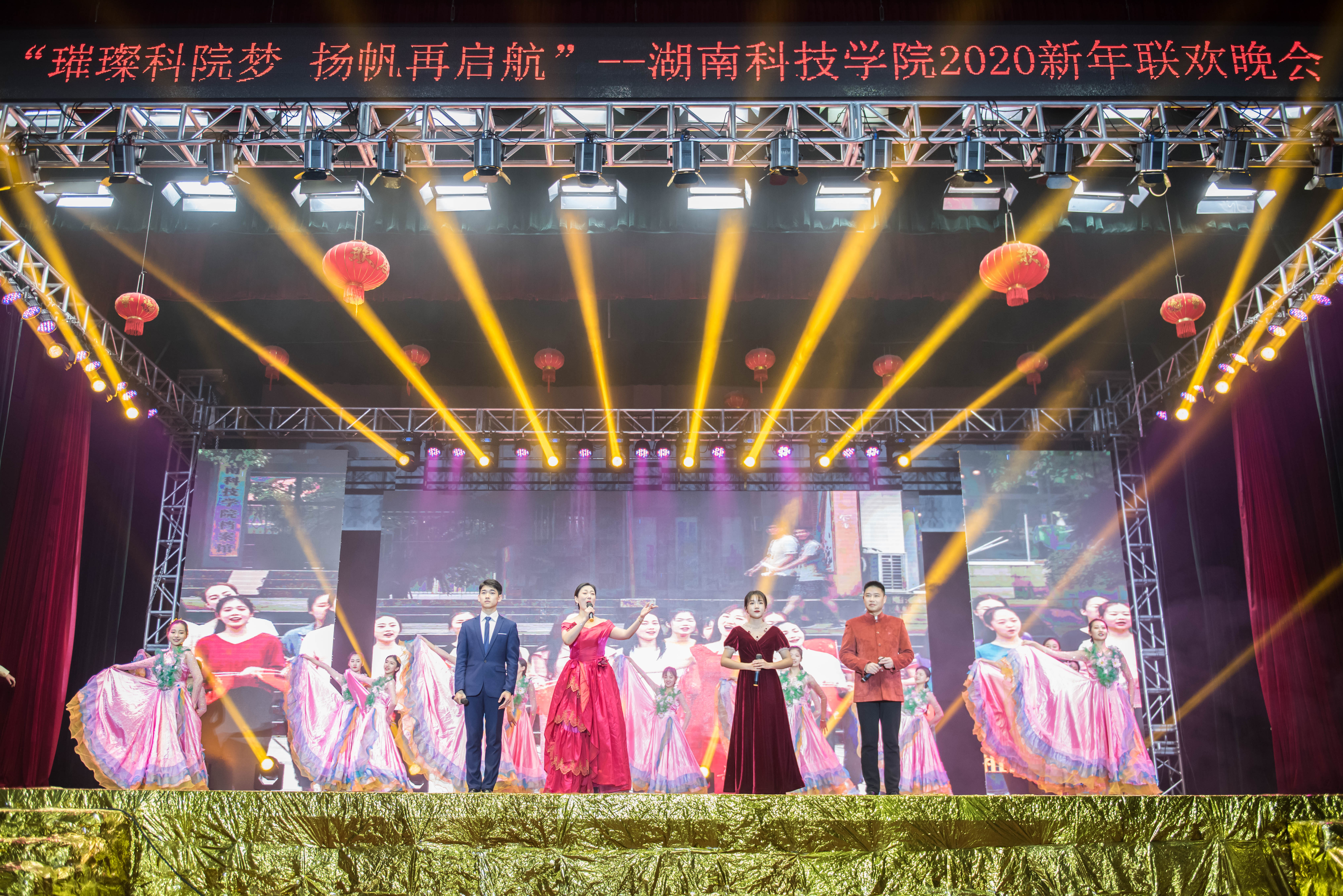 本网讯 12月30日晚,学校举行“璀璨科院梦,扬帆再起航”2020年教职工新年晚会。校党委书记曾宝成,校长李钢,校领导唐艳明、宋宏福、彭立威、李常健、吴小林、程智开,党委委员、组织部长何福林,党委委员、宣传统战部长杨涛,老领导和老同志及各教学学院和职能部门负责人,全校教职工和学生代表近两千人参加。