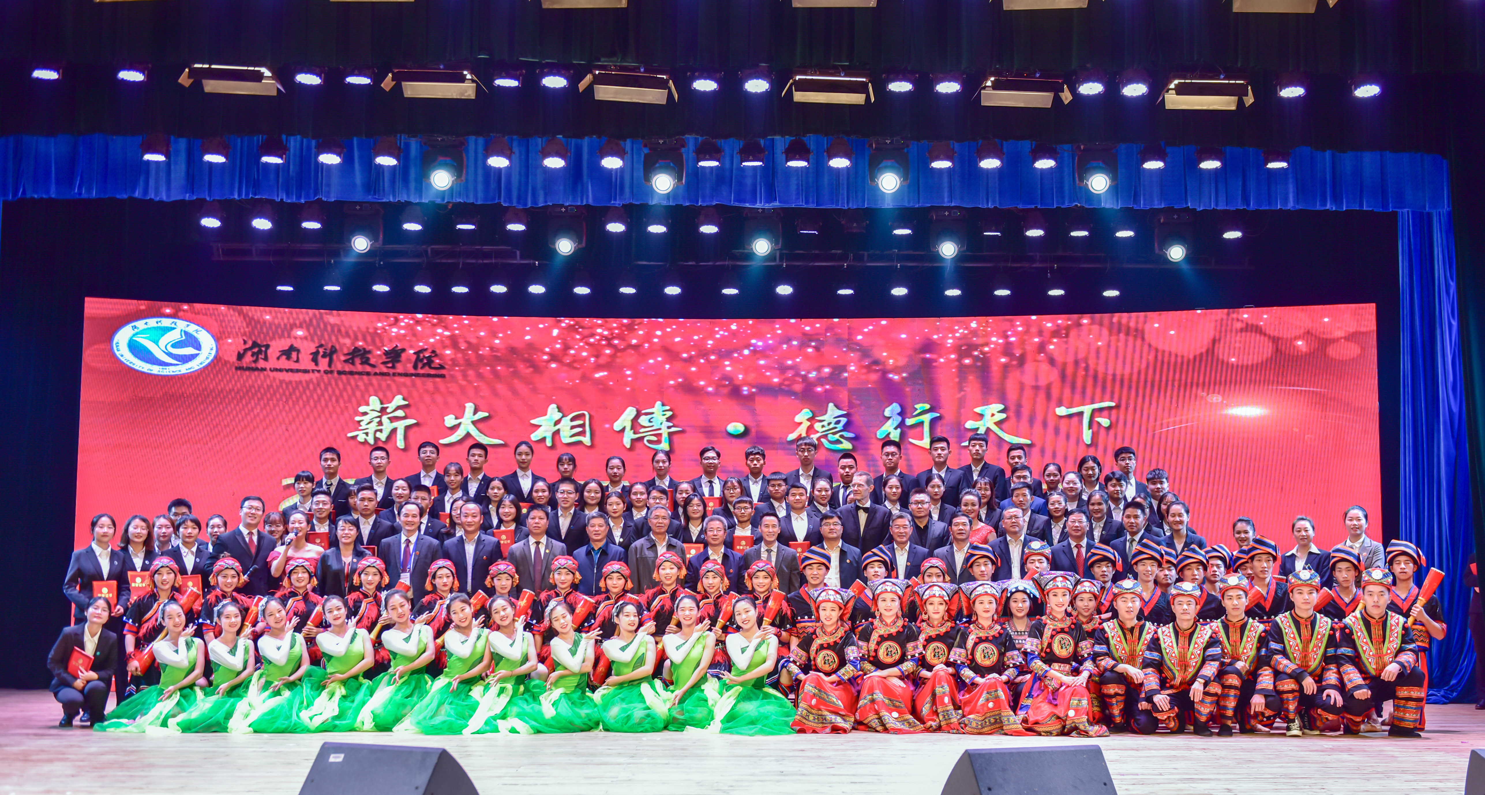 本网讯 七十八年春风化雨,七十八年立德树人。11月12日晚,正值学校建校78周年纪念日,学校举行“薪火相传·德行天下-乐鱼官方网站2019年舜德学子颁奖典礼”,100名优秀学子获表彰。本科教学工作审核评估专家广西师范大学原副校长钟瑞添、武汉音乐学院学科建设与规划办公室主任陈明,党委书记曾宝成,校长李钢,校领导唐艳明、宋宏福、彭立威、吴小林、程智开,党委委员、组织部长何福林,党委委员、宣传统战部长杨涛等参加颁奖典礼,并与学校师生共同观看表彰晚会。