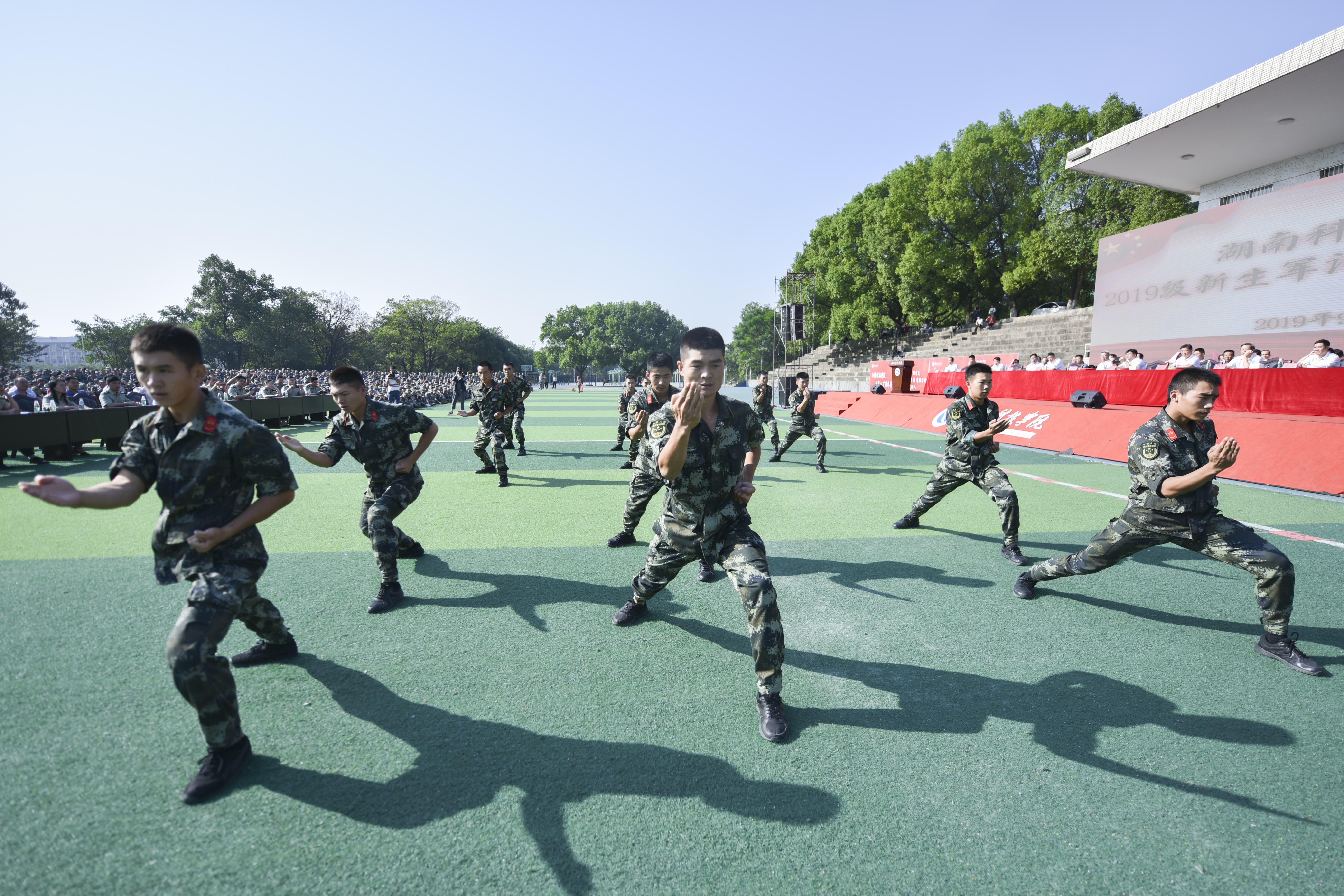 会议在雄壮的国歌中开幕。在优秀连队队列展示环节,同学们步伐整齐,口号嘹亮,气宇轩昂,展现了积极向上的精神风貌。随后,军训教官进行队列和擒敌术表演,铿锵有力,动作精准,精彩的表演赢得现场阵阵掌声。