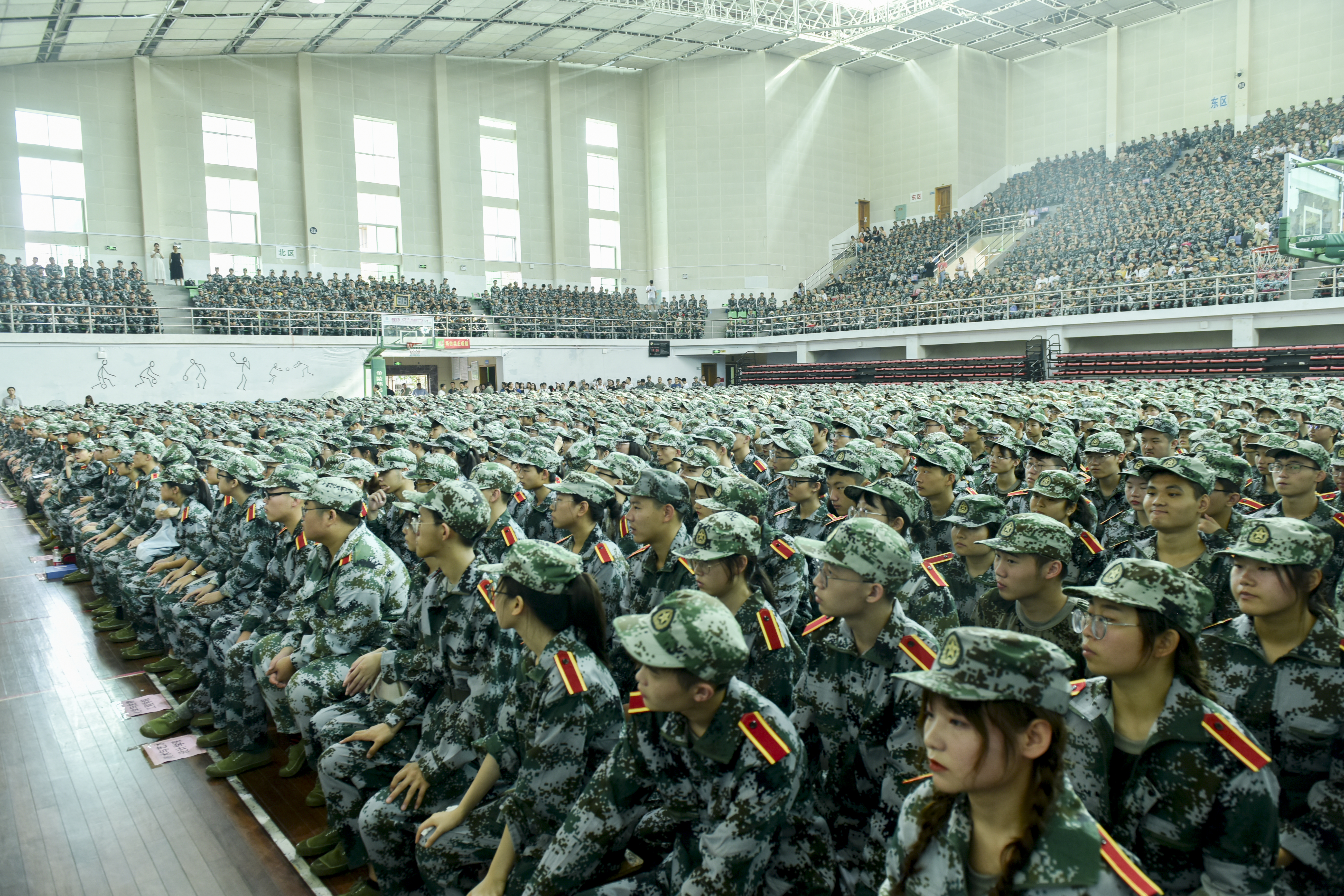 据悉,此次参训共有3929人,共分为1个团,4个营,62个连,为期14天。各教学学院2019级辅导员,班主任及2019级全体新生参加此次动员大会。