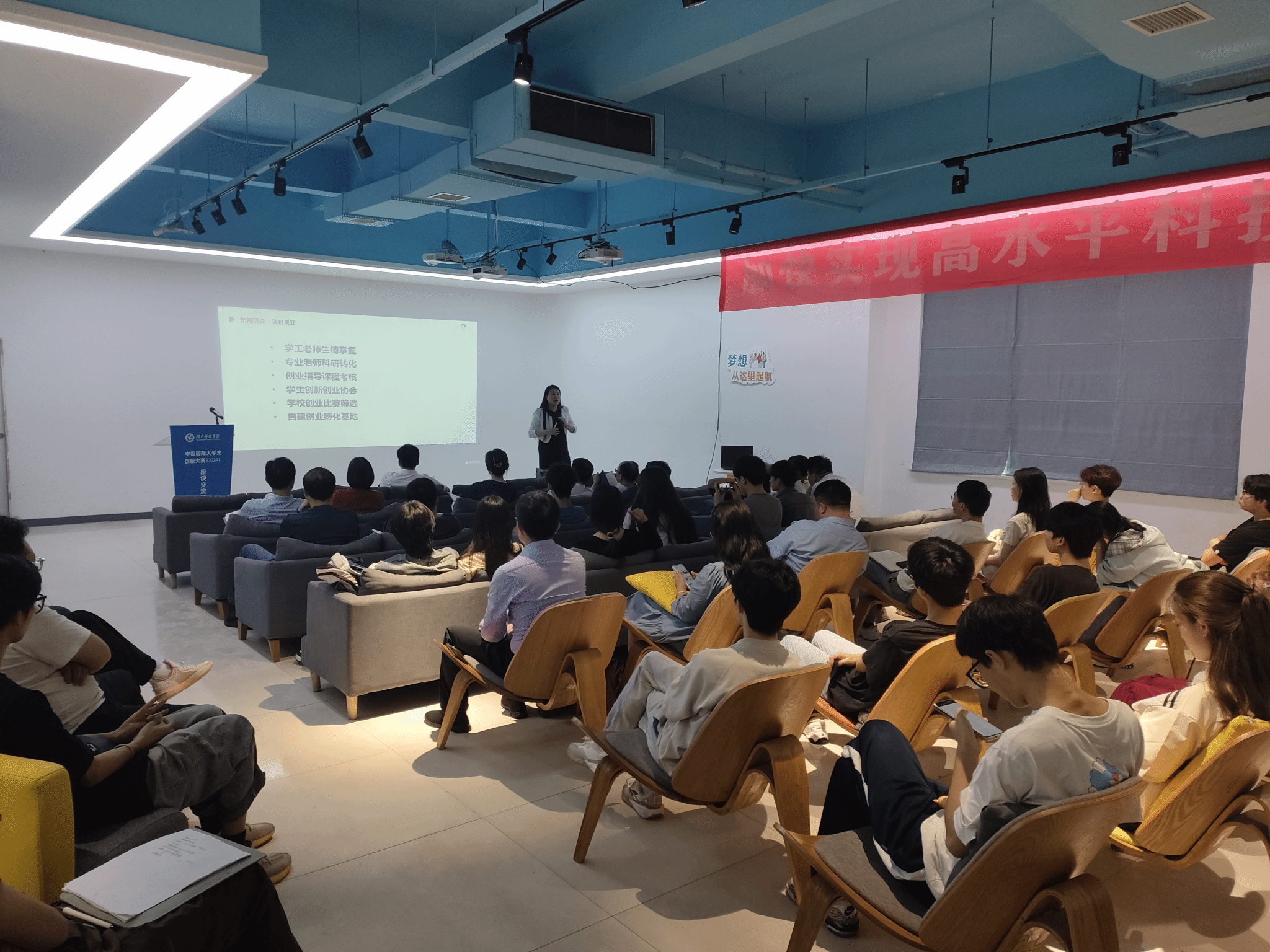 蔡离离结合往届国赛金奖项目对大赛进行系统、全面、清晰的讲解,重点讲述优秀项目挖掘、团队组建逻辑、项目计划书撰写,并就备赛提出建设性意见。